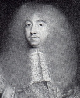 second Duke of Buckingham in what is an obvious wig, due to its frizzy
